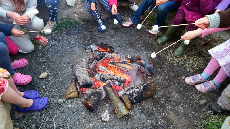 Every Wednesday night mid-July through August from 6.30pm - James and Pete light the fire and barbecues and you can sit and relax with the family around the fire and listen to local Shanty Band Du Hag Owr. Campers and children are welcome to join in the entertainment with a song or a joke or two. It's a lovely family evening. usually rounded off with some marshmallow toasting over the embers of the fire.