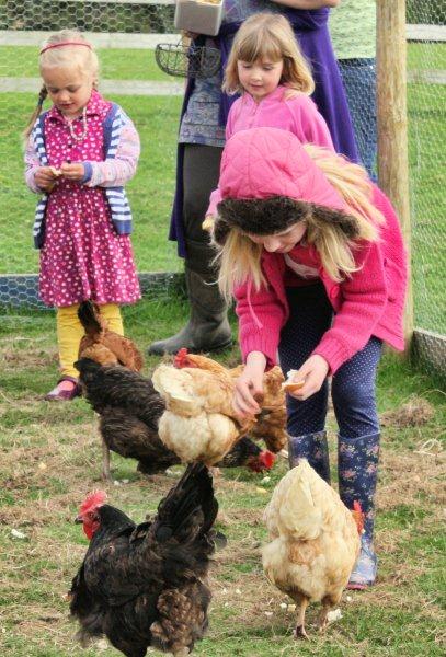 Listen for the bell. Molly or Debs will ring the bell at 0930hrs and take you down to feed the sheep and chickens then collect the eggs, Children love feeding and handling the animals. When the campsite is quieter just come and get Mlly or Debs and they will take you down to the animals.